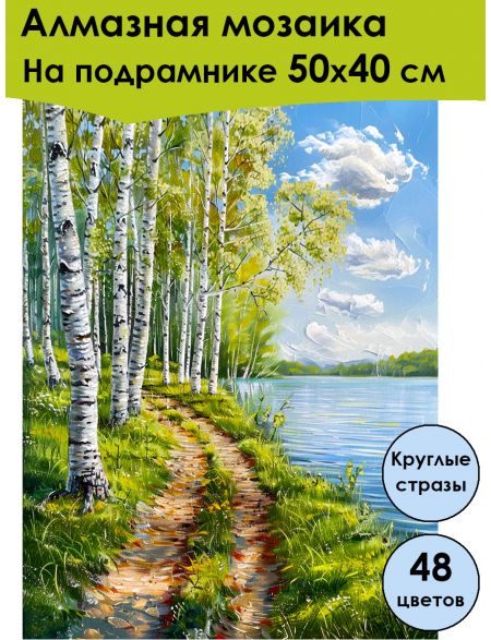 Алмазная мозаика на подрамнике «Березки» 50x40 см, 48 цветов