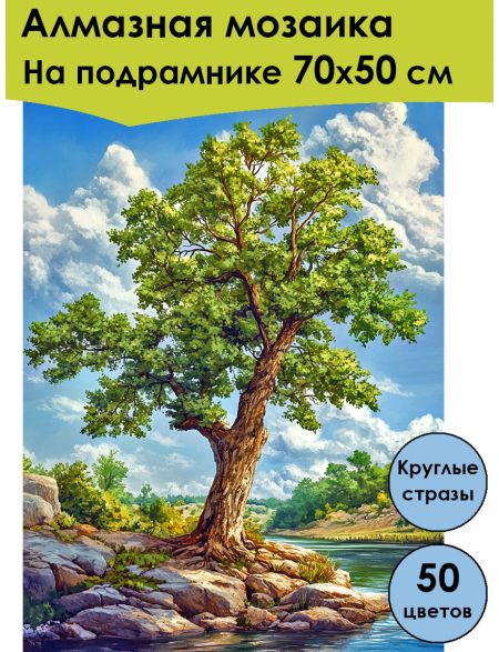 Алмазная мозаика на подрамнике «Одинокий дуб» 70x50 см, 50 цветов