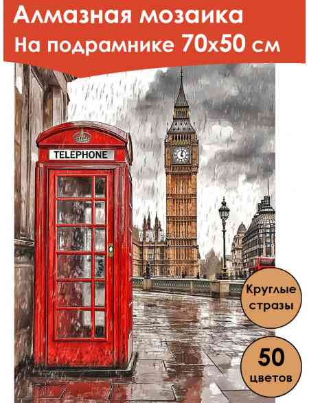 Алмазная мозаика на подрамнике «Телефон Лондон» 70x50 см, 50 цветов