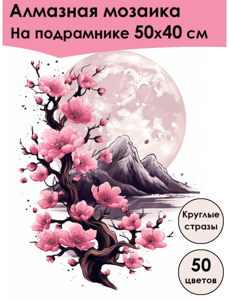 Алмазная мозаика на подрамнике «Сакура» 50x40 см, 50 цветов