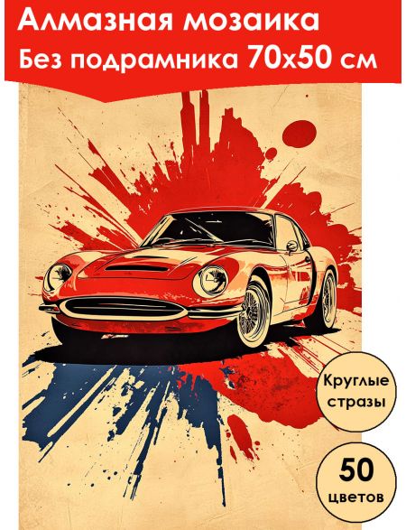 Алмазная мозаика на подрамнике «Авто постер» 70x50 см, 50 цветов