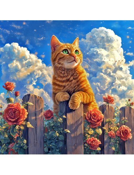 Алмазная мозаика без подрамника «Кот на заборе» 90x90 см