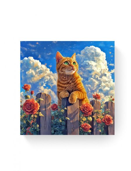Алмазная мозаика на подрамнике «Кот на заборе» 40x40 см