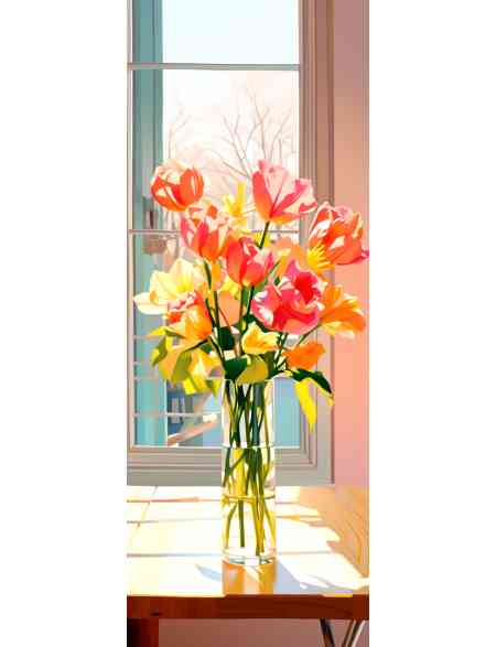 Алмазная мозаика без подрамника «Букет тюльпанов» 90x30 см, 50 цветов