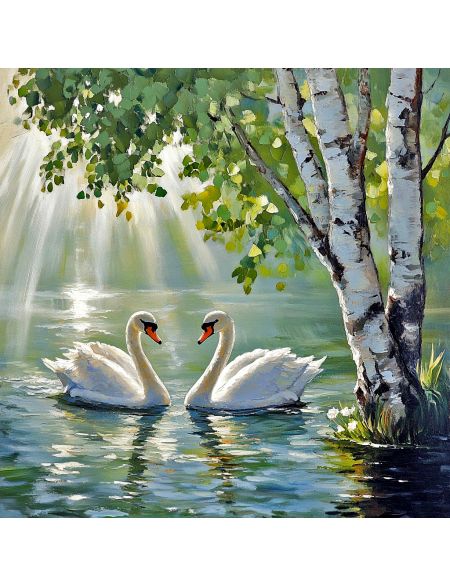 Алмазная мозаика без подрамника «Лебеди» 50x50 см