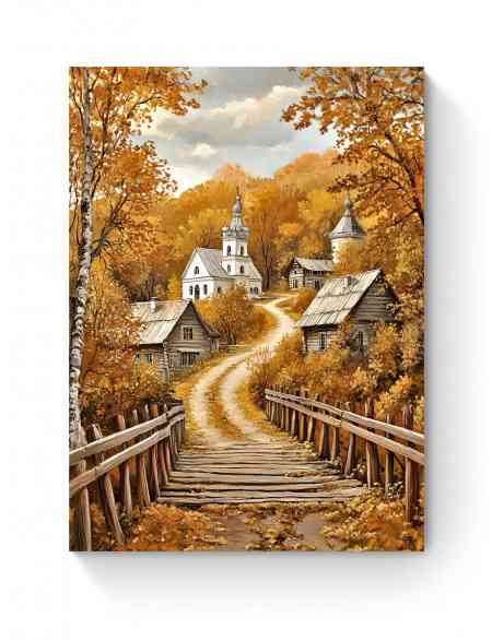 Алмазная мозаика на подрамнике «Осень в деревне» 50x40 см, 50 цветов