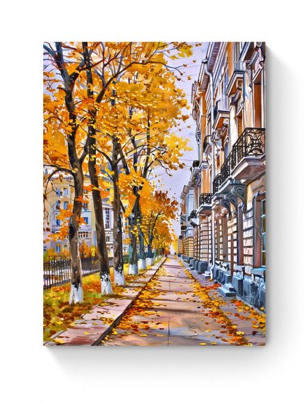 Алмазная мозаика на подрамнике «Осенняя улочка» 50x40 см, 50 цветов