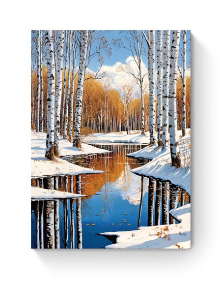 Алмазная мозаика на подрамнике «Березы у реки» 50x40 см, 50 цветов