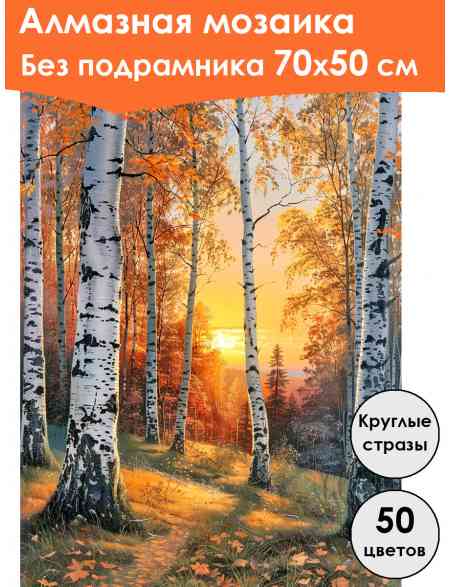 Алмазная мозаика без подрамника «Золотая осень» 70x50 см, 50 цветов