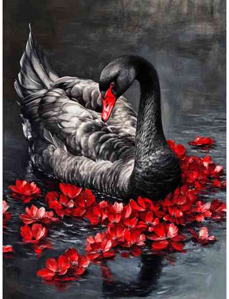 Алмазная мозаика без подрамника «Черный лебедь» 130x100 см