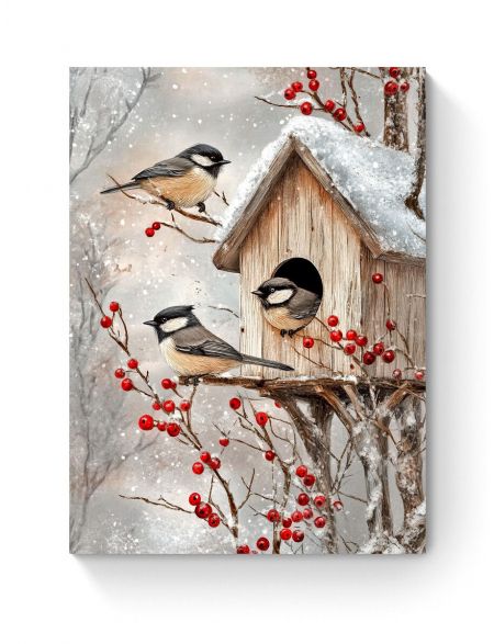Алмазная мозаика на подрамнике «Синички» 50x40 см, 50 цветов