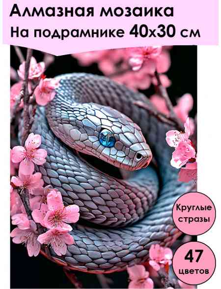 Алмазная мозаика на подрамнике «Цветочная змея» 40x30 см, 47 цветов