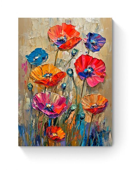 Алмазная мозаика на подрамнике «Маки мастихином» 50x40 см, 50 цветов