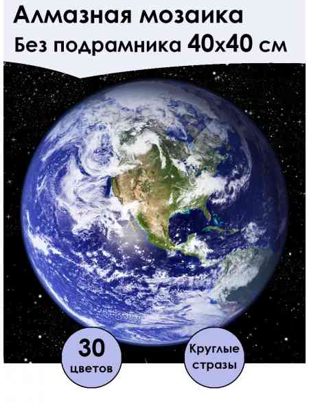 Алмазная мозаика без подрамника «Планета Земля» 40x40 см, 30 цветов