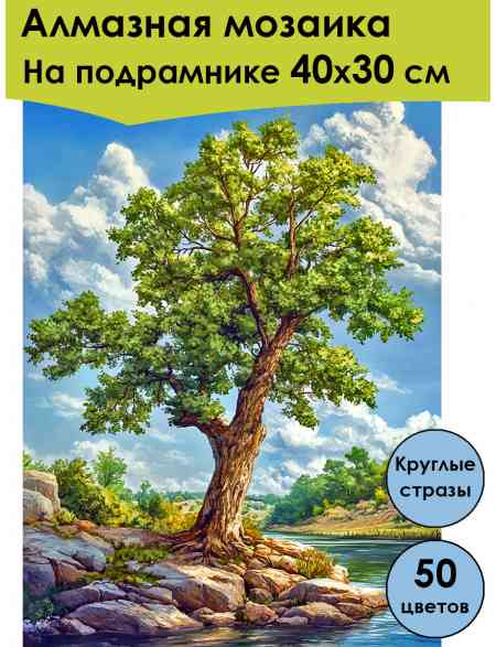 Алмазная мозаика на подрамнике «Одинокий дуб» 40x30 см, 50 цветов