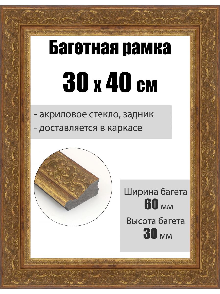 Рамка багетная для картин со стеклом 40 x 30 см, РБ-278
