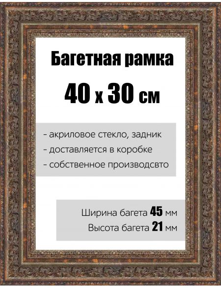 Рамка багетная для картин со стеклом 40 x 30 см, РБ-150
