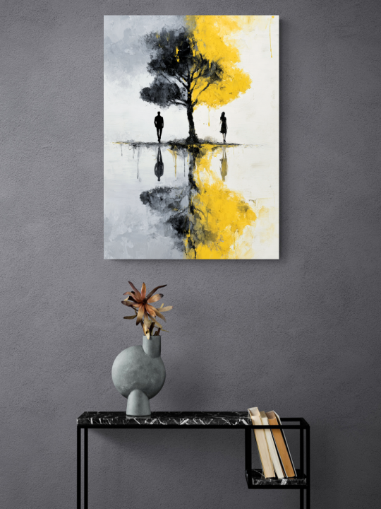 Пожалуйста обратите внимание что это интерьерная картина, не картина по номерам и не алмазная мозаика. Картина без подрамника напечатана на холсте и свернута в тубус, такую картину можно вставить в багетную или любую другую рамочку и повесить на стену. Большинство производителей используют экосольвентные краски, из-за их дешевизны - они вредны для здоровья так как в них содержится свинец, картины напечатанные на таких красках не рекомендуется вешать дома и имеют неприятный запах. Мы используем пигментные краски на водной основе японского производства они абсолютно безопасные. Напечатанная картина выглядит очень красиво, цвета яркие, НЕ выцветают много лет. Высокое качество печати. Тубус защищает картину при транспортировке, поэтому вы всегда получите её в товарном виде. Картина без подрамника и она не предназначена для натяжки на подрамник. Размер указан самой картины. Девушка и парень стоят по разные стороны дерева. Игра цветов, желтые и серые оттенки создают уютную и комфортную атмосферу вокруг.