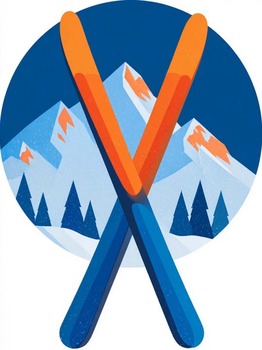 Пожалуйста обратите внимание что это интерьерная картина, не картина по номерам и не алмазная мозаика. Картина напечатана на холсте и натянута на подрамник. Подрамник крепкий, добротный , имеет специальную вставку что бы холст был всегда хорошо натянут и не проминался внутрь. Большинство производителей используют экосольвентные краски, из-за их дешевизны - они вредны для здоровья так как в них содержится свинец, картины напечатанные на таких красках не рекомендуется вешать дома и имеют неприятный запах. Мы используем пигментные краски на водной основе японского производства они абсолютно безопасные. Напечатанная картина выглядит очень красиво, цвета яркие, НЕ выцветают много лет. Высокое качество печати. Доставляется в картонной коробке, поэтому вы всегда получите её в товарном виде. Размер указан самой картины. Иллюстрация с изображением двух перекрещенных лыж ярких оранжевого и синего цветов на фоне круглой эмблемы с изображением заснеженных гор и елей, выполненная в минималистичном стиле с использованием насыщенных оттенков синего и оранжевого.