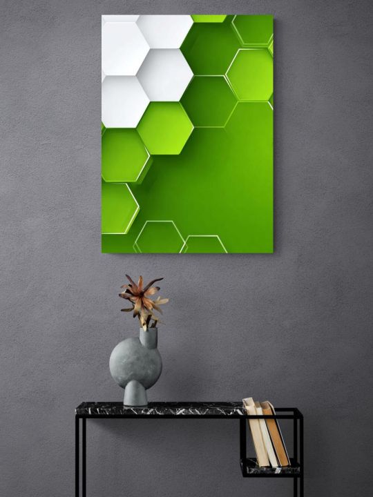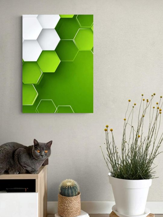Пожалуйста обратите внимание что это интерьерная картина, не картина по номерам и не алмазная мозаика. Картина без подрамника напечатана на холсте и свернута в тубус, такую картину можно вставить в багетную или любую другую рамочку и повесить на стену. Большинство производителей используют экосольвентные краски, из-за их дешевизны - они вредны для здоровья так как в них содержится свинец, картины напечатанные на таких красках не рекомендуется вешать дома и имеют неприятный запах. Мы используем пигментные краски на водной основе японского производства они абсолютно безопасные. Напечатанная картина выглядит очень красиво, цвета яркие, НЕ выцветают много лет. Высокое качество печати. Тубус защищает картину при транспортировке, поэтому вы всегда получите её в товарном виде. Картина без подрамника и она не предназначена для натяжки на подрамник. Размер указан самой картины. Изображение содержит абстрактный фон с повторяющимися шестиугольниками, выполненными в зелёных и белых тонах, создавая эффект мозаики.