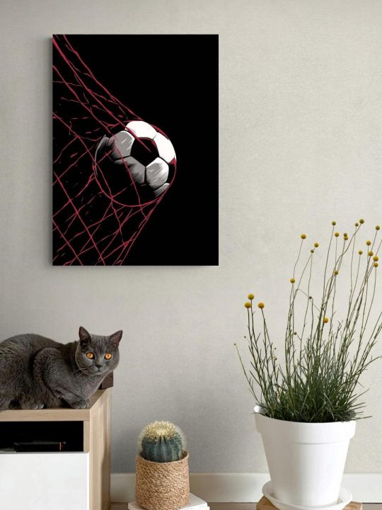 Пожалуйста обратите внимание что это интерьерная картина, не картина по номерам и не алмазная мозаика. Картина без подрамника напечатана на холсте и свернута в тубус, такую картину можно вставить в багетную или любую другую рамочку и повесить на стену. Большинство производителей используют экосольвентные краски, из-за их дешевизны - они вредны для здоровья так как в них содержится свинец, картины напечатанные на таких красках не рекомендуется вешать дома и имеют неприятный запах. Мы используем пигментные краски на водной основе японского производства они абсолютно безопасные. Напечатанная картина выглядит очень красиво, цвета яркие, НЕ выцветают много лет. Высокое качество печати. Тубус защищает картину при транспортировке, поэтому вы всегда получите её в товарном виде. Картина без подрамника и она не предназначена для натяжки на подрамник. Размер указан самой картины. На изображении показан футбольный мяч, попавший в сетку ворот, где сетка окрашена в красный цвет, а темный фон создает драматичное и динамичное впечатление момента гола.