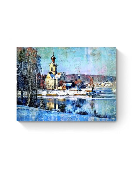 Картина интерьерная на подрамнике «Деревня зимой» холст 70 x 50 см