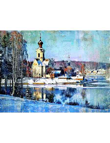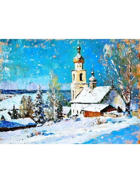 Картина интерьерная «Деревня зимой» холст 25 x 35 см