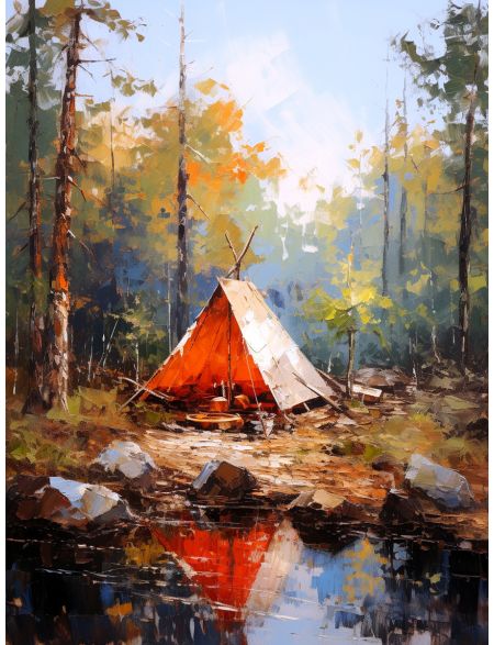 Картина интерьерная «Палатка в лесу» холст 50 x 40 см