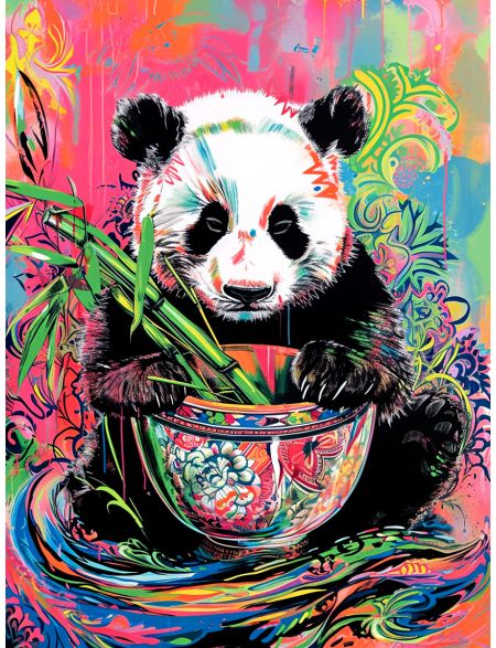 Картина интерьерная «Панда с бамбуком» холст 18 x 24 см