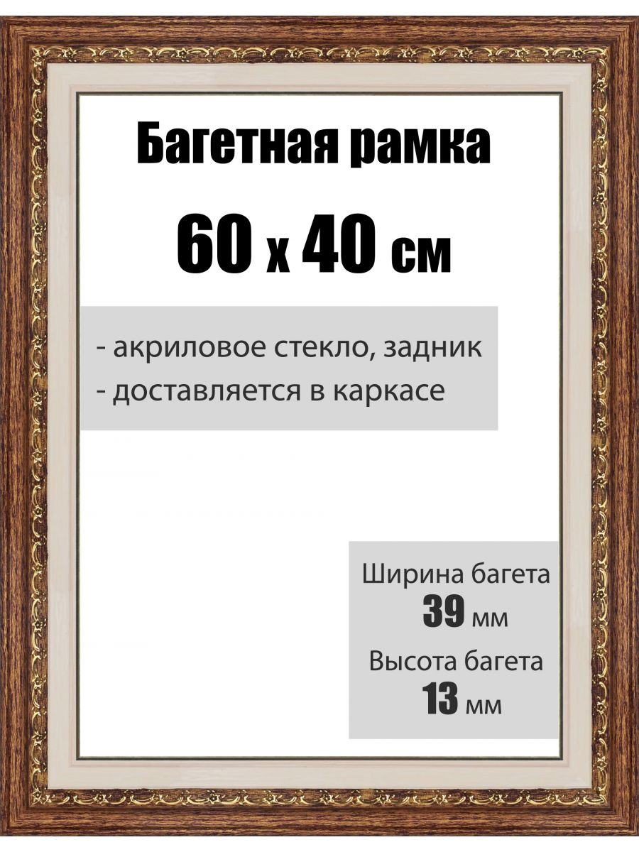 Рамка багетная для картин со стеклом 60 x 40 см, РБ-036