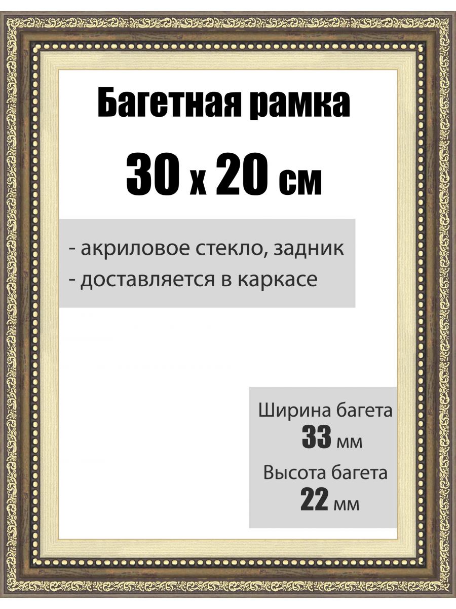 Рамка багетная для картин со стеклом 30 x 20 см, РБ-066