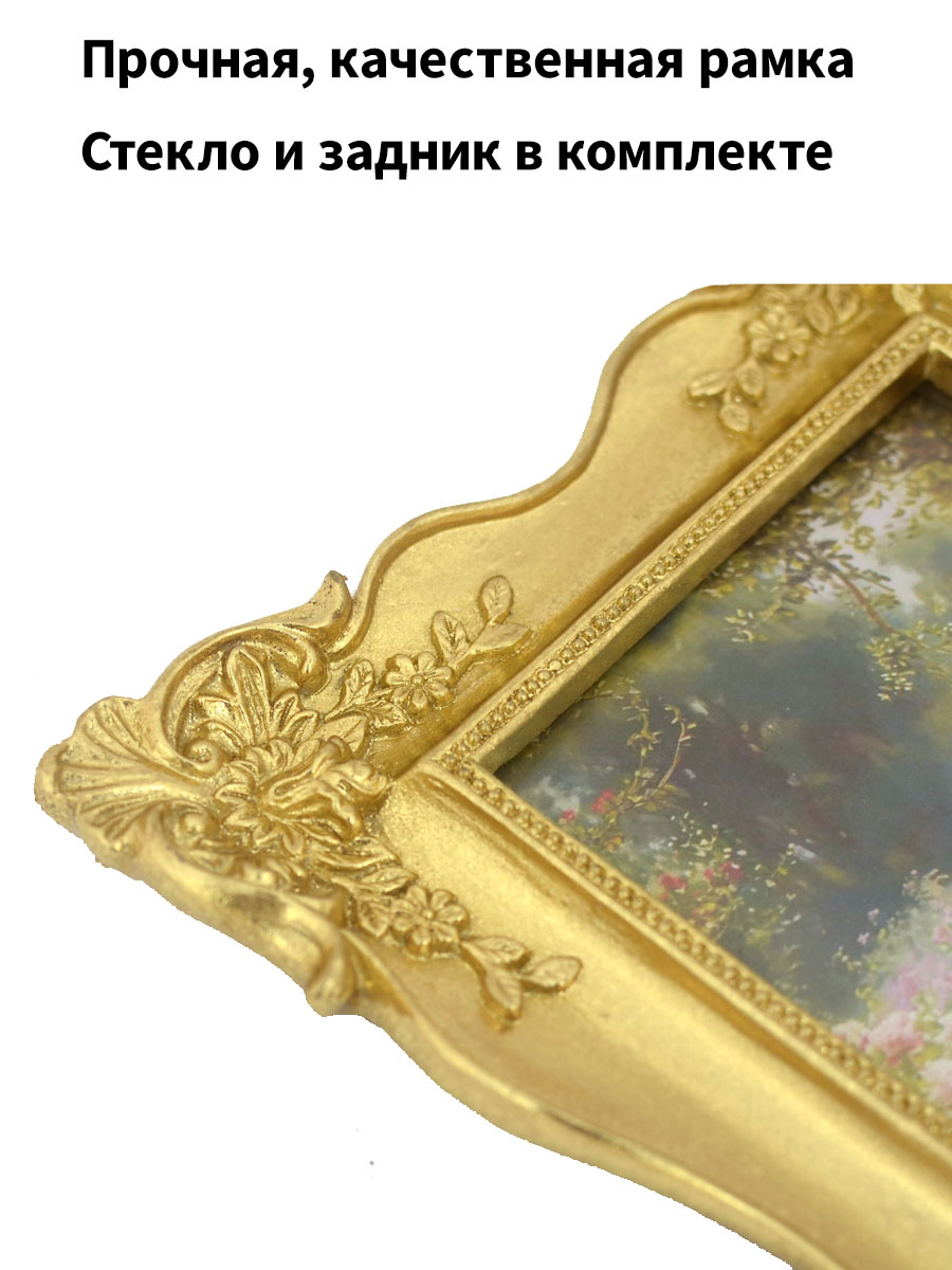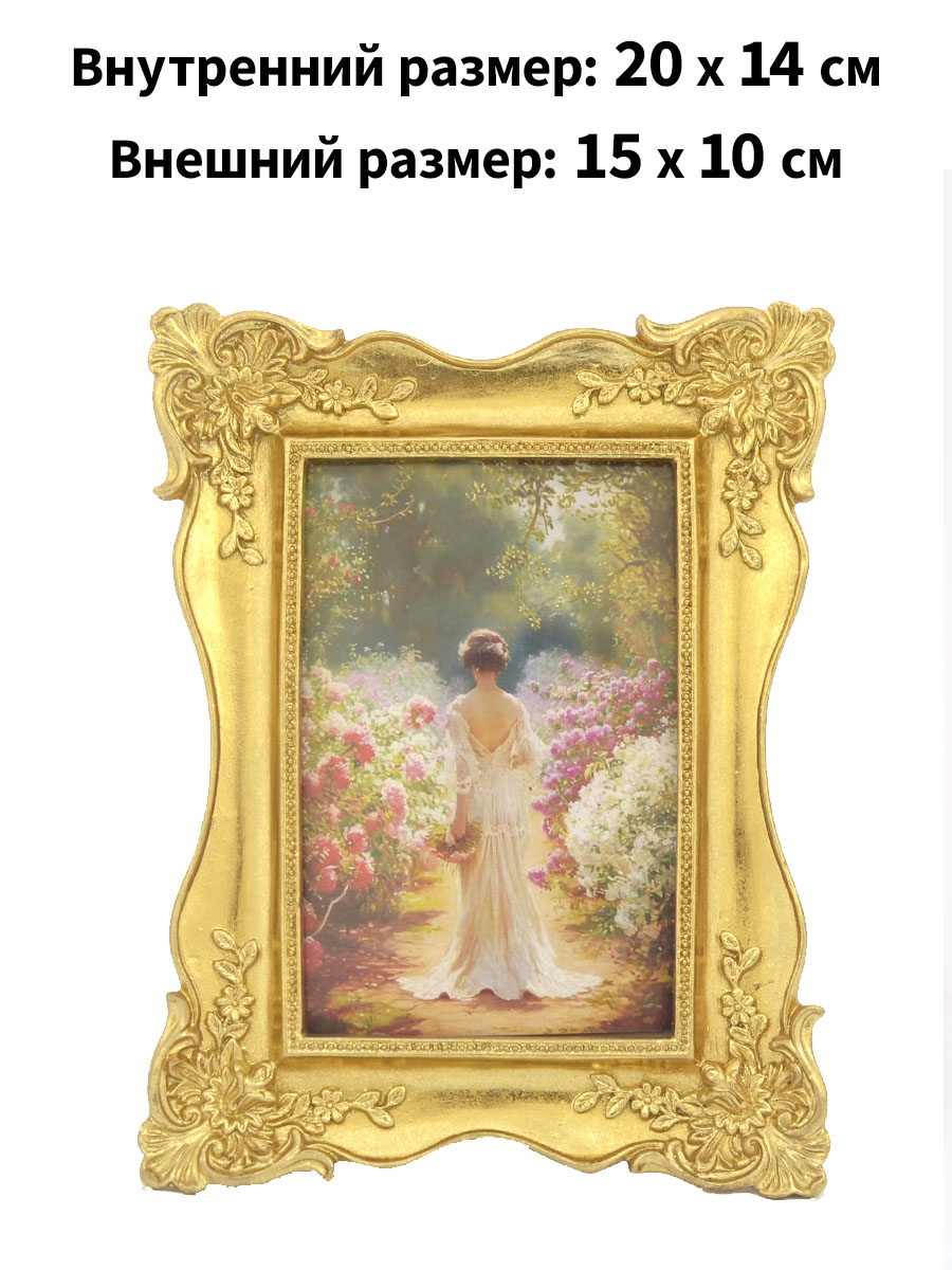 Резная багетная рамка под старину, изготовлена из гипса и покрыта патиной. Ширина багета 30 мм. Высокое качество изготовления. Доставляется в транспортировочной коробке, которая предотвращает рамку от повреждений. В комплект входит рамка, задник, стекло, крючок для подвешивания. Внутренний размер 10 x 15 см, внешний размер 20 x 15 см