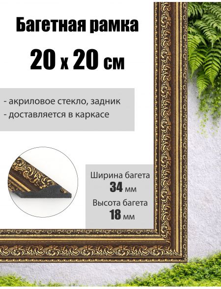 Рамка багетная для картин со стеклом 20 x 20 см, РБ-230