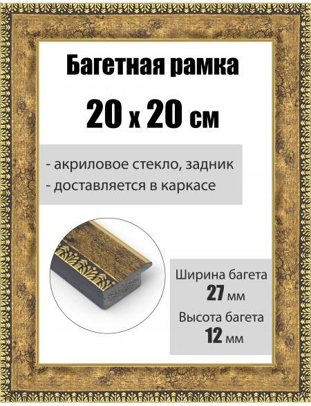 Рамка багетная для картин со стеклом 20 x 20 см, РБ-077