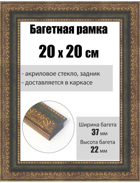 Рамка багетная для картин со стеклом 20 x 20 см, РБ-022
