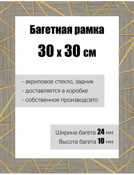 Рамка багетная для картин со стеклом 30 x 30 см, РБ-059