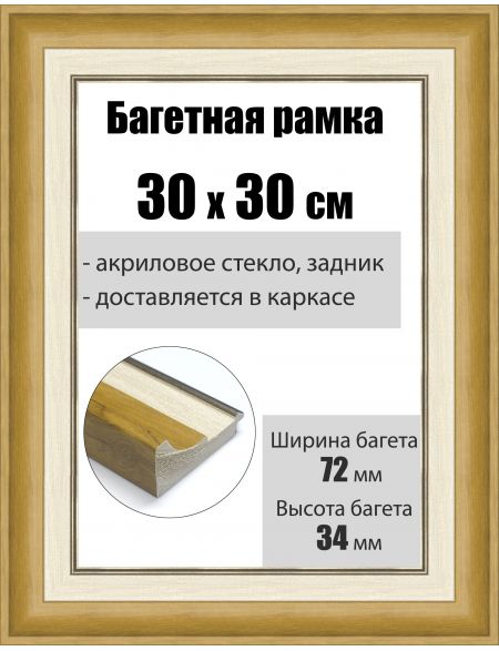 Рамка багетная для картин со стеклом 30 x 30 см, РБ-174