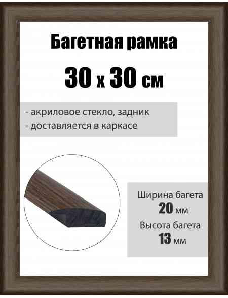 Рамка багетная для картин со стеклом 30 x 30 см, РБ-074