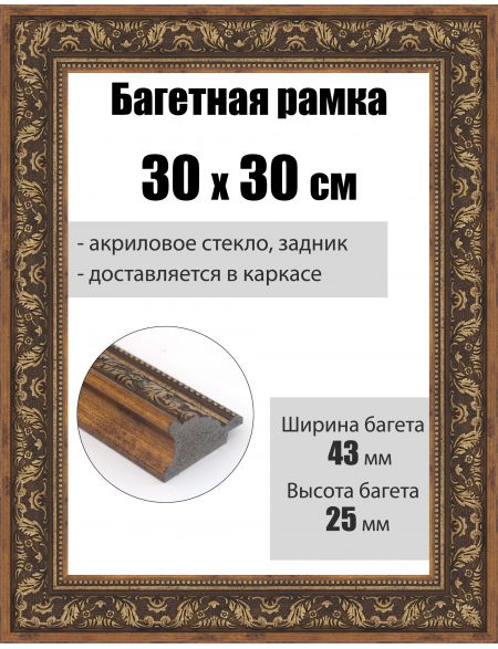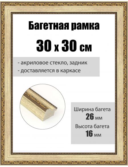 Рамка багетная для картин со стеклом 30 x 30 см, РБ-263