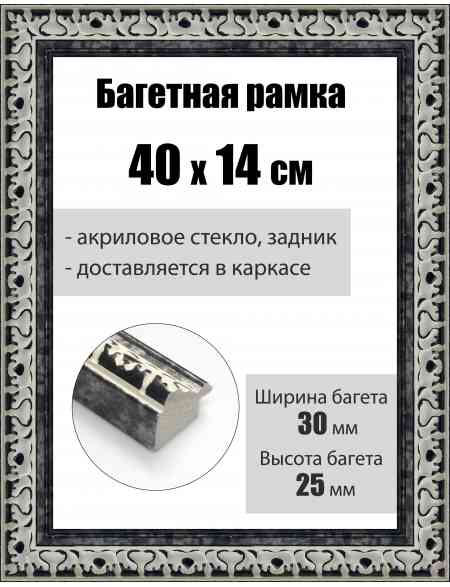 Рамка багетная для картин со стеклом 40 x 14 см, РБ-016