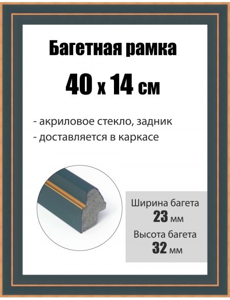 Рамка багетная для картин со стеклом 40 x 14 см, РБ-014