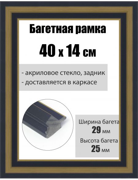 Рамка багетная для картин со стеклом 40 x 14 см, РБ-143