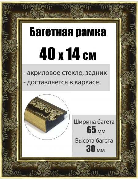 Рамка багетная для картин со стеклом 40 x 14 см, РБ-140