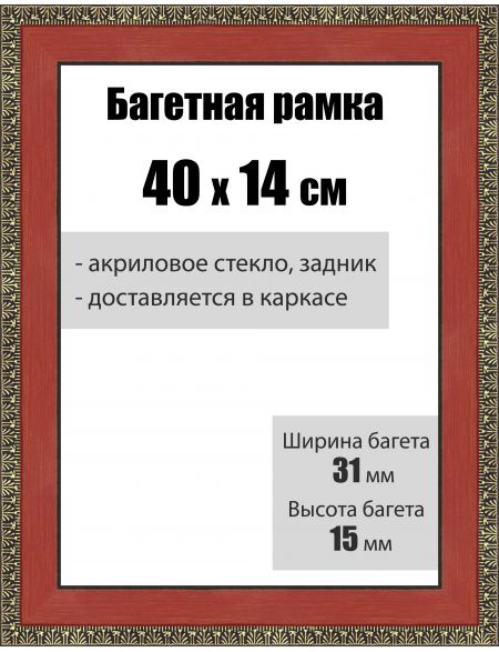 Рамка багетная для картин со стеклом 40 x 14 см, РБ-021