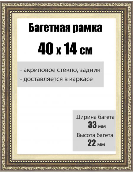 Рамка багетная для картин со стеклом 40 x 14 см, РБ-022