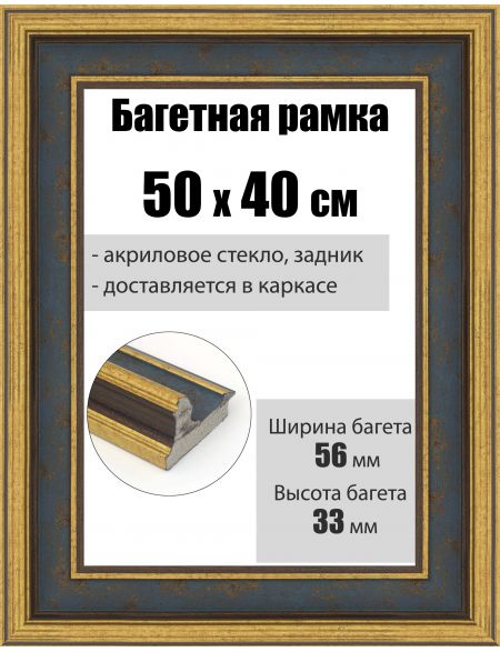 Рамка багетная для картин со стеклом 50 x 40 см, РБ-289
