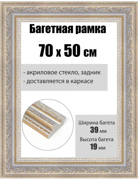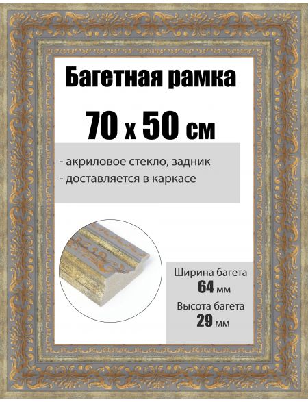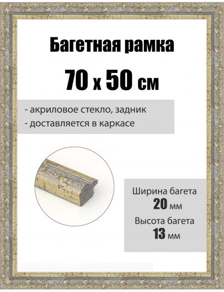 Рамка багетная для картин со стеклом 70 x 50 см, РБ-193