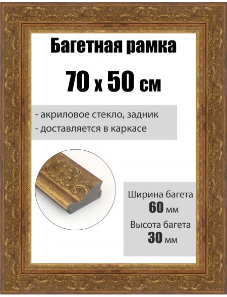 Рамка багетная для картин со стеклом 70 x 50 см, РБ-258