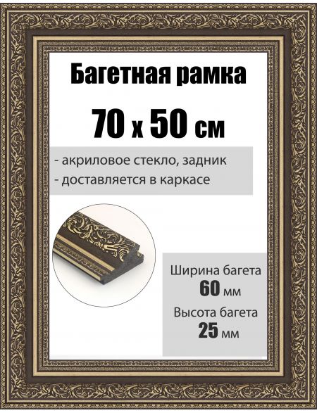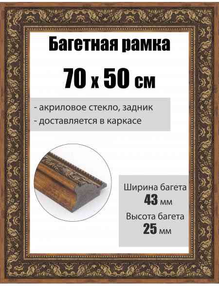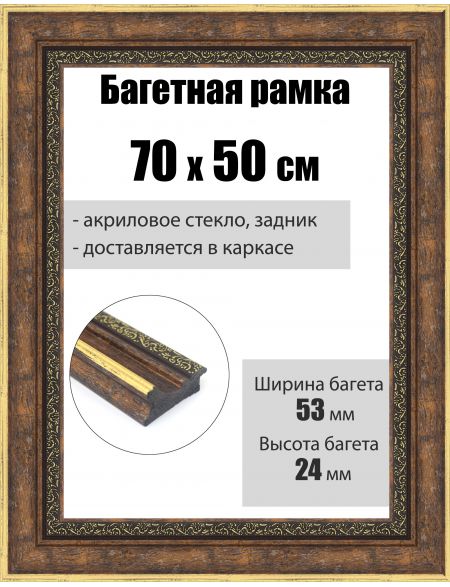 Рамка багетная для картин со стеклом 70 x 50 см, РБ-259