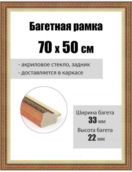 Рамка багетная для картин со стеклом 70 x 50 см, РБ-254